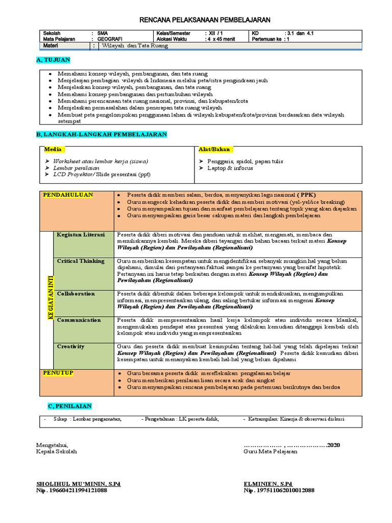Guna memberikan bapak/ibu guru contoh rpp 1 lembar pada mata pelajaran geografi , admin centralpendidikan.com akan membagikannya dalam format microsoft word, agar bisa di edit sesuai dengan nama sekolah, kepala sekolah, guru pengajar, dan sma dimana guru mengajar untuk kegiatan pembelajaran kelas xi semester 1 dan semester 2. Rpp 1 lembar sma dan contoh rpp 1 lembar sma tahun 2020 akan menjadi perubahan penting, guru dituntut sendiri dalam mengembangkan rpp (rencana pelaksanaan pembelajaran). View komponen rpp k13 1 lembar pictures di 2020 belajar kurikulum membaca from id.pinterest.com. | dokpri salam sejahtera buat para guru indonesia, menjadi seorang guru merupakan sebuah tugas yang sangat mulia sebab seluruh anak bangsa yang menorehkan keberhasilan di segala bidang merupakan buah dari kerja keras seorang guru dalam memberikan pendidikan dan ilmu pengetahuan yang baik kepada. Rpp 1 lembar geografi kelas 10,11,12 terbaru 2020. Download rpp kimia 1 lembar. Rpp saya dapat dari mgmp dan dibuat oleh bapak sugiyono. Download rpp geografi 1 lembar. Rpp geografi 1 lembar ditulis oleh ilmiahku.com. Kumpulan rpp 1 lembar sma, kumpulan rpp 1 lembar smk dan kumpulan rpp 1 lembar ma akan kami bahas dan membagikan untuk bapak dan ibu guru yang membutuhkan rpp 1 lembar tahun 2020. Untuk mendownload rpp sma pelajaran geografi kelas 11 format 1. Rpp geografi 1 lembar sma kelas x, xi, xii semester ganjil kurikulum 2013 revisi terkini membahas berhubungan agenda pengerjaan pelajaran (rpp) satu lembar geografi yang admin siapkan inipun kecuali menyesuaikan bagian dari kebijakan baru kemendikbud mengenai penyederhanaan administratif guru. Tampilan rpp 1 lembar ini kurang lebih bisa bapak ibu saksikan pada tautan link di bawah ini.