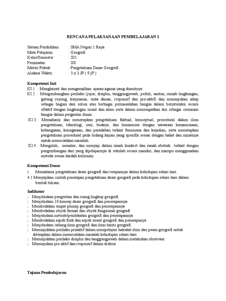 Rpp k13 1 lembar geografi kelas 11 pada contoh file rpp sma 1 lembar geografi ini dimana telah tersusun dengan memuat 3 komponen utama.